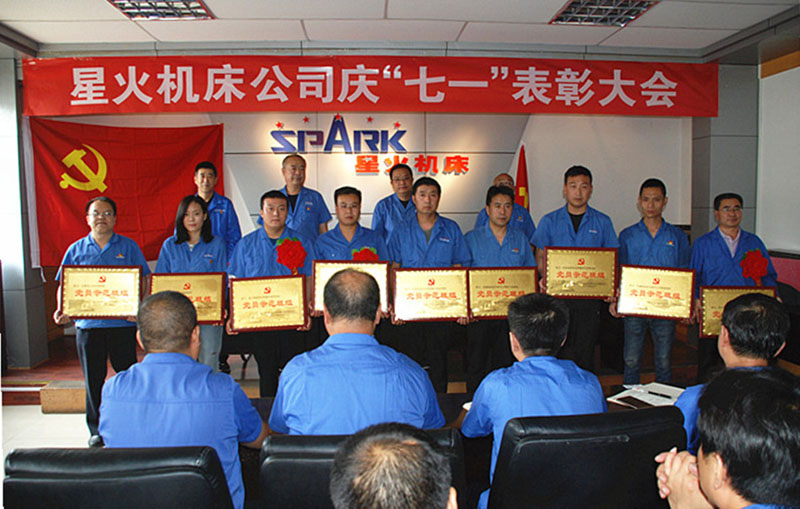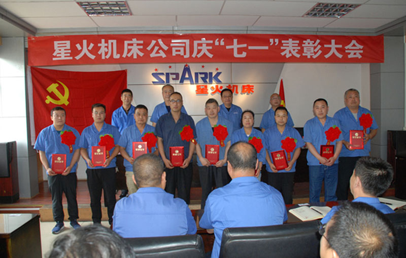 7月1日,星火機床集團公司召開慶“七一”表彰大會,隆重紀念中國共產黨成立99周年。黨委書記、集團公司董事長蔣保權,黨委委員、集團公司副總經理趙錦銘、高發巨出席會議。