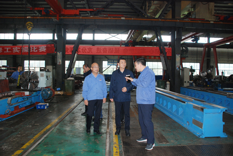丁建榮來到公司后,首先在小會議室與集團公司領導座談,聽取了集團公司領導關于企業生產經營工作的介紹。隨后,在劉勝、蔣俊等領導的陪同下,深入機械制造公司、機床裝備公司生產現場參觀。參觀過程中,劉勝、蔣俊分別介紹了公司的技術水平、加工能力和各種產品,陪同參觀了公司展廳。丁建榮對公司克服疫情影響,恢復產能、擴大市場所做的努力表示贊賞,并祝愿公司克服面臨的困難,為振興我國裝備制造業做出應有貢獻。