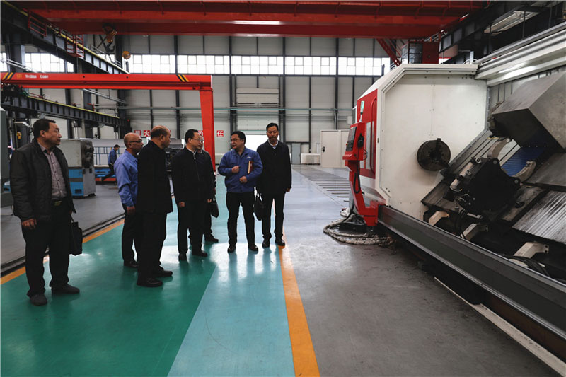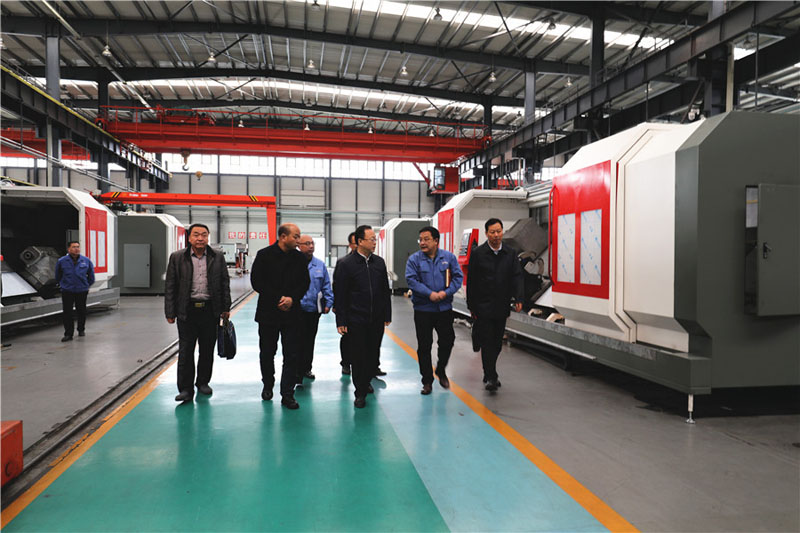 賈義翔一行參觀了公司研發生產的各類數控精密機床產品,聽取了蔣保權關于公司研發能力、技術水平、產品市場前景等情況的介紹。