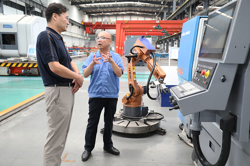 8月18日,天水師范學(xué)院黨委書記李正元,黨委常委、副校長汪聚應(yīng)、王文東,校辦主任王建斌,人事處處長張利軍,教務(wù)處處長郭昭第,科研管理處處長左國防,研究生處處長吳原,合作交流處副處長石峰,機(jī)電與汽車工程學(xué)院院長羅海玉,化學(xué)工程與技術(shù)學(xué)院副院長李志鋒,電子信息與電氣工程學(xué)院黨委副書記王岱一行12人來星火機(jī)床公司參觀考察。星火機(jī)床集團(tuán)公司黨委副書記、副總經(jīng)理蔣俊,集團(tuán)公司副總經(jīng)理、星火公司總經(jīng)理趙錦銘,星火公司副總經(jīng)理劉生玉,總經(jīng)理助理、機(jī)床研究院常務(wù)副院長展海瑜及行政綜合部部長姚保忠,黨群工作部部長蔡建欣接待并陪同參觀考察。