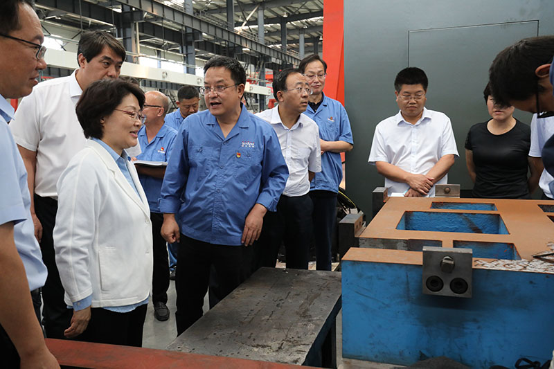 張永霞書記一行先后深入星火機床公司工業園裝配、加工生產現場和紅山公司生產現場,參觀了各種產品。調研中,星火機床集團公司黨委書記、董事長蔣保權向張永霞書記重點介紹了星火機床集團公司基本情況、生產經營工作、產品市場占有率、行業地位,公司正在實施或即將實施的多軸聯動數控纏繞機床研發及產業化項目、核乏燃料儲運罐生產線研發及產業化項目,機床研發設計檢測及創新能力提升、公司“十四五規劃”、公司鑄造智能化綠色化升級改造、戰略重組青海青重機床和智能制造及產業化、船用特型零件專用加工設備研發、大型五軸車銑復合加工中心研發等項目進展和預期效益,以及目前存在的困難和遇到的問題。