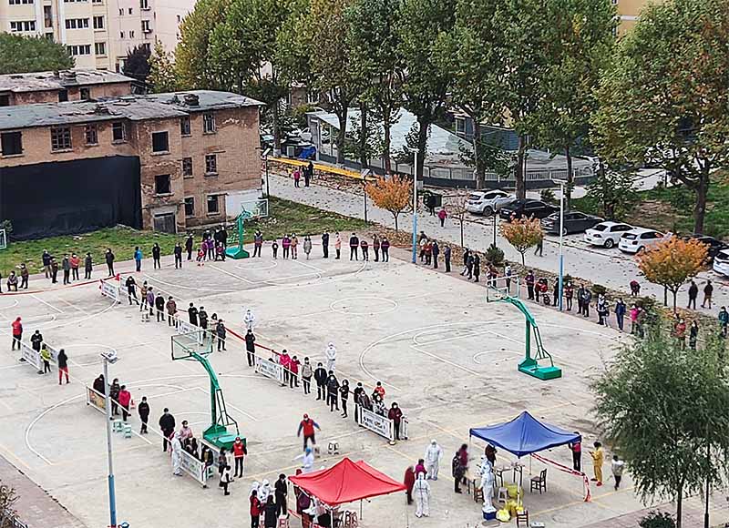 物業管理公司副經理曹育紅,一邊頭戴小紅帽、身穿紅馬甲參加志愿服務活動,維持參加核酸檢測人員的秩序,一邊負責暖氣管道爆裂等突發情況的處置,保證供暖正常。