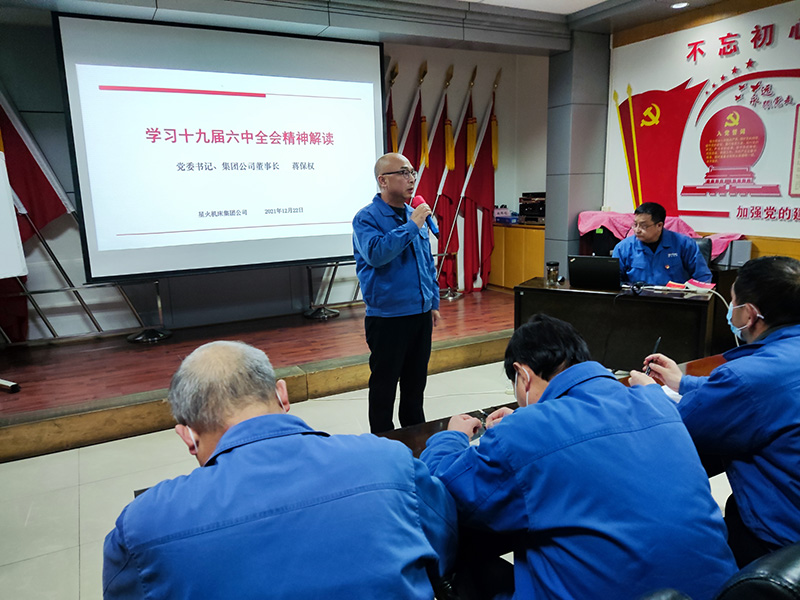 12月22日晚上7點,星火機床公司組織中層以上干部、支部書記、分會主席、政協委員、人大代表、市級以上勞模等50多人,專題學習黨的十九屆六中全會精神、天水市第八次黨代會精神。星火機床集團公司黨委書記、董事長蔣保權專題講解黨的十九屆六中全會精神、天水市第八次黨代會精神,分享自己學習感悟。