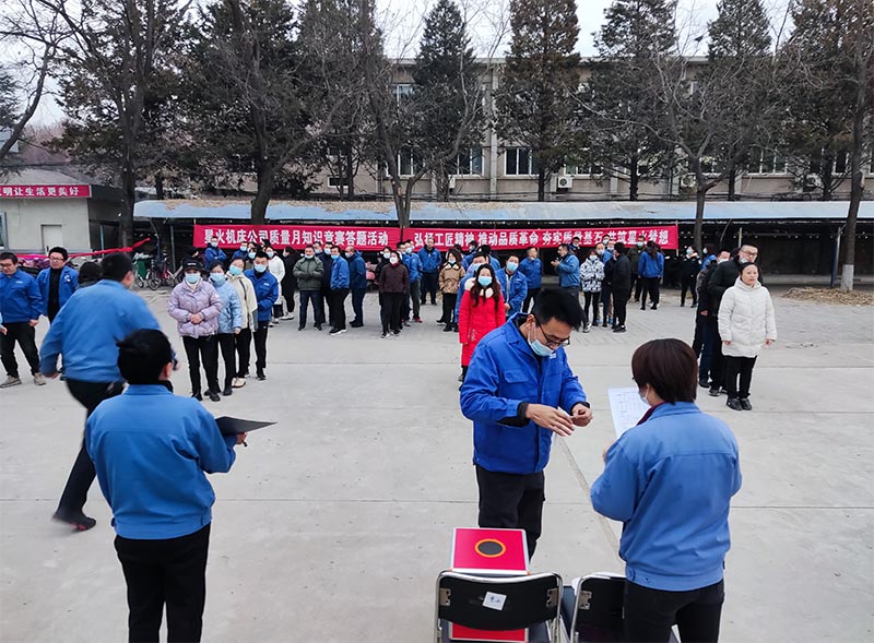 為增強廣大職工質量意識,進一步提升企業質量管理工作水平,為用戶提供更優質的產品,同時豐富職工業余文化生活,因生產經營壓力大、時間緊,加之疫情影響,原定10月初開展的以“弘揚工匠精神, 推動品質革命,夯實質量基石,共筑星火夢想”為主題的趣味答題活動, 于11月26日早上7點半,在公司大門前籃球場舉行。