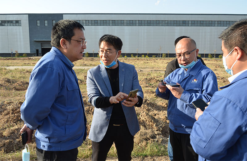 4月2日,星火機床集團公司黨委書記、董事長蔣保權,黨委副書記、副總經理蔣俊與項目設計單位機械工業第六設計院有限公司技術人員,一同深入項目建設工地查看施工情況。
