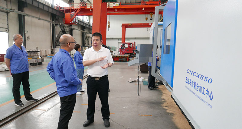 陳海龍一行參觀了公司研發生產的各類機床產品,認真聽取了集團公司黨委副書記、副總經理蔣俊關于企業發展歷程、技術研發能力、生產經營情況、市場前景、項目建設進展及公司“十四五”發展規劃等情況介紹,詳細詢問了企業上半年生產經營工作,特別是企業目前存在的主要困難和問題。