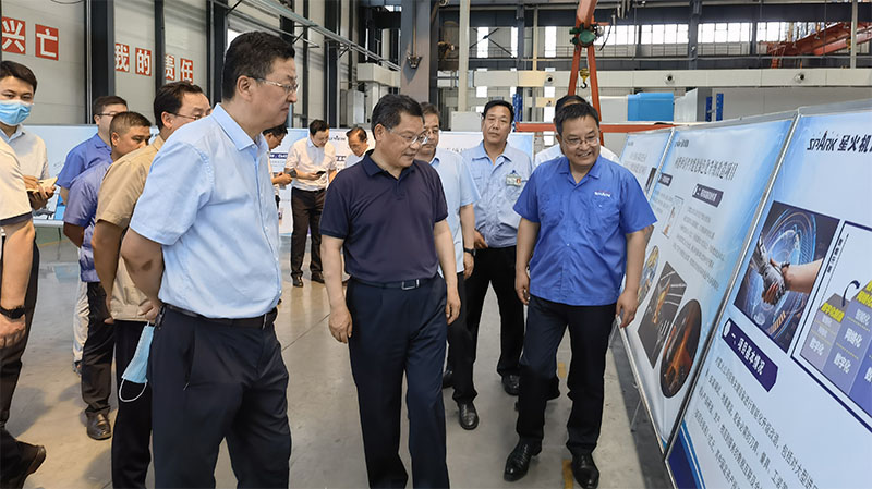 任振鶴省長聽取了星火機床公司黨委書記、董事長蔣保權關于企業上半年生產經營情況、技術創新體系建設、產品研發成果、在攻克“卡脖子”問題中發揮的作用、項目建設情況匯報,并實地查看數控機床裝配現場、重型機床裝配現場。
