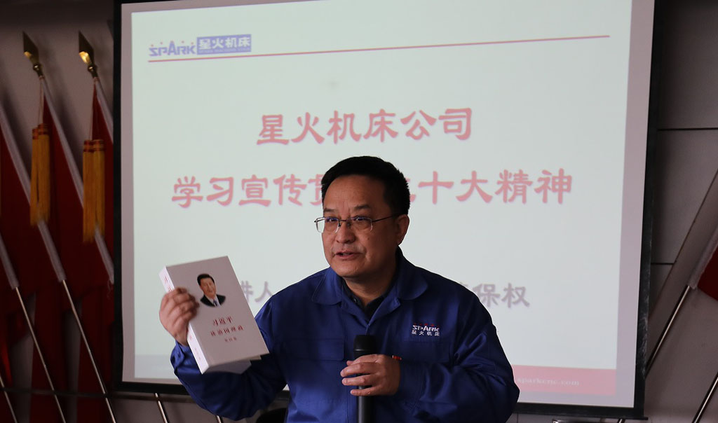 11月25日,星火機(jī)床公司黨委組織中層以上干部、黨支部書(shū)記、分會(huì)主席、青年骨干職工集體學(xué)習(xí)黨的二十大精神。集團(tuán)公司黨委書(shū)記、董事長(zhǎng)蔣保權(quán)結(jié)合習(xí)近平治國(guó)理政思想就堅(jiān)持中國(guó)共產(chǎn)黨的領(lǐng)導(dǎo)、堅(jiān)持人民至上、保持高昂的斗爭(zhēng)精神和堅(jiān)定不移走高質(zhì)量發(fā)展之路等方面內(nèi)容講專(zhuān)題黨課。