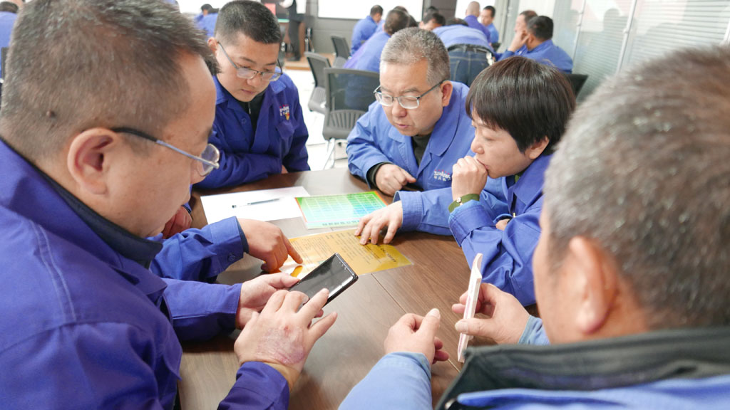 28日13:30分,簡短的破冰活動后,培訓(xùn)老師將參訓(xùn)人員分組編隊(duì),在充滿豪情的勵(lì)志口號聲拉開了拓展培訓(xùn)的帷幕。通過《商戰(zhàn)》沙盤、《成功之路》《吉塔行星》《模擬聯(lián)合國》等一個(gè)個(gè)精心設(shè)計(jì)項(xiàng)目的培訓(xùn),模擬公司運(yùn)營中的情景,使參訓(xùn)人員真正感受了企業(yè)經(jīng)營的不易。面對一個(gè)個(gè)充滿挑戰(zhàn)的項(xiàng)目,參訓(xùn)人員全心投入,熱情高漲,用智慧和汗水協(xié)力完成了每項(xiàng)挑戰(zhàn),并分享了培訓(xùn)感悟。