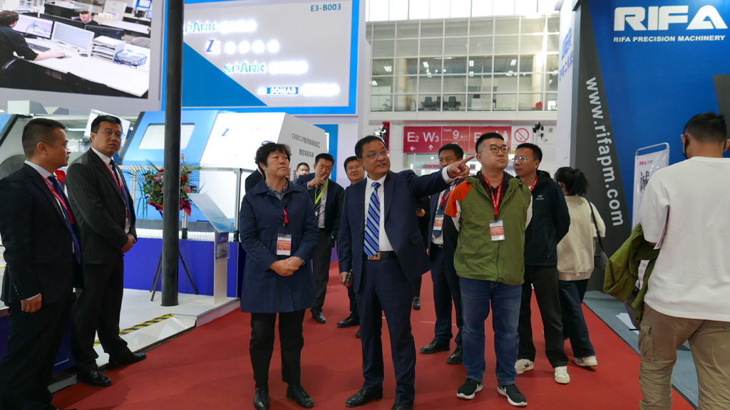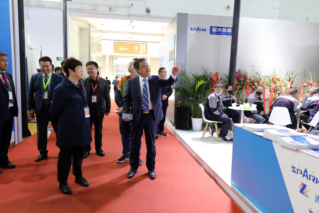 4月15日, 甘肅省國有資產投資集團有限公司黨委委員、副總經理王文秀,甘肅國投集團總法律顧問、風控審計部部長楊林軍等一行3人蒞臨北京國際機床展星火展位參觀。