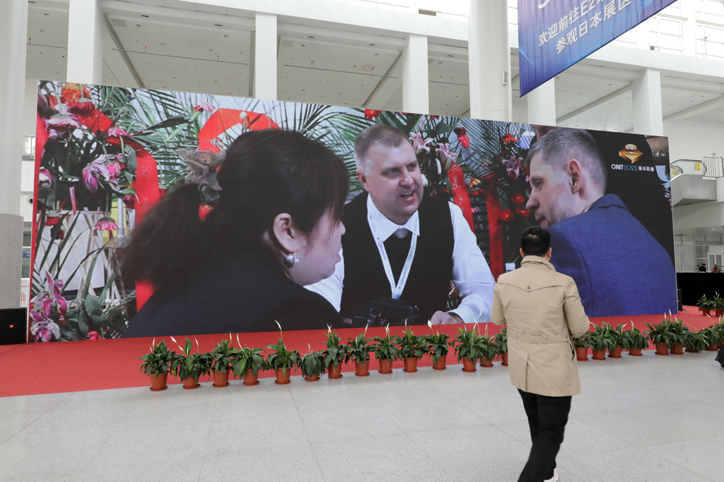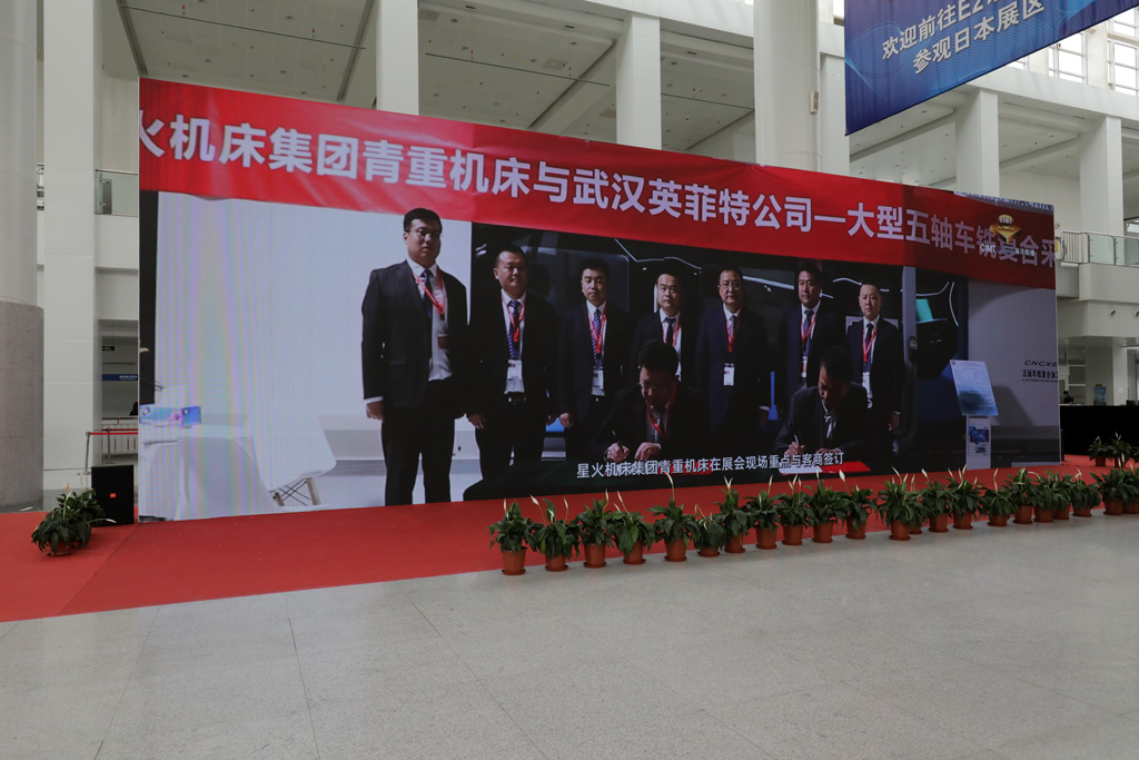 4月14日,中國機床工具行業協會主會場大屏及視頻號滾動播放星火機床集團公司展位商務洽談及簽約盛況。
