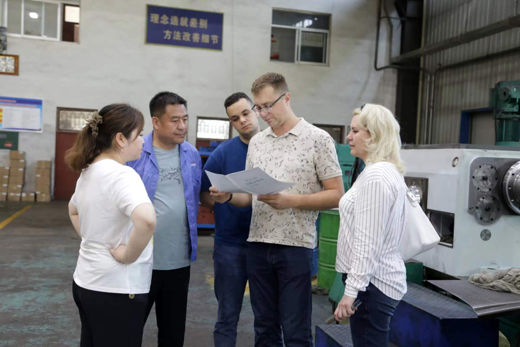 在生產車間角落,客商看到兩臺蘇聯時期的機器,在得知其曾經為企業的發展立下汗馬功勞而被保存下來時,客商們紛紛感慨于企業深厚的人文情懷,感嘆企業悠久的發展歷程。