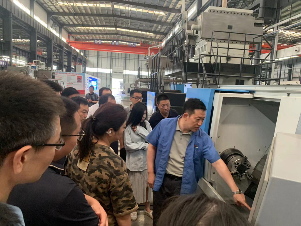 在工業(yè)園裝配車(chē)間,劉勝對(duì)市委黨校2個(gè)培訓(xùn)班學(xué)員來(lái)公司參觀表示歡迎。他向大家介紹了企業(yè)的發(fā)展歷程,企業(yè)文化以及公司發(fā)展變化,結(jié)合現(xiàn)場(chǎng)裝配中的產(chǎn)品向大家詳細(xì)介紹了重型臥式車(chē)床、五軸聯(lián)動(dòng)復(fù)合加工中心、長(zhǎng)軸機(jī)床以及消化吸收法國(guó)索瑪公司先進(jìn)技術(shù)生產(chǎn)的航空精密機(jī)床。學(xué)員們對(duì)公司的產(chǎn)品性能、用途以及市場(chǎng)前景等表現(xiàn)出極大興趣,不時(shí)向公司領(lǐng)導(dǎo)們提問(wèn)。劉勝、蔣俊針對(duì)學(xué)員們的具體問(wèn)題分別進(jìn)行了解答,現(xiàn)場(chǎng)頓時(shí)充滿(mǎn)濃厚的學(xué)術(shù)氛圍。通過(guò)實(shí)地參觀,大家對(duì)于星火有了更加深刻的了解。