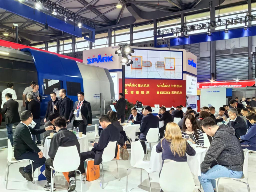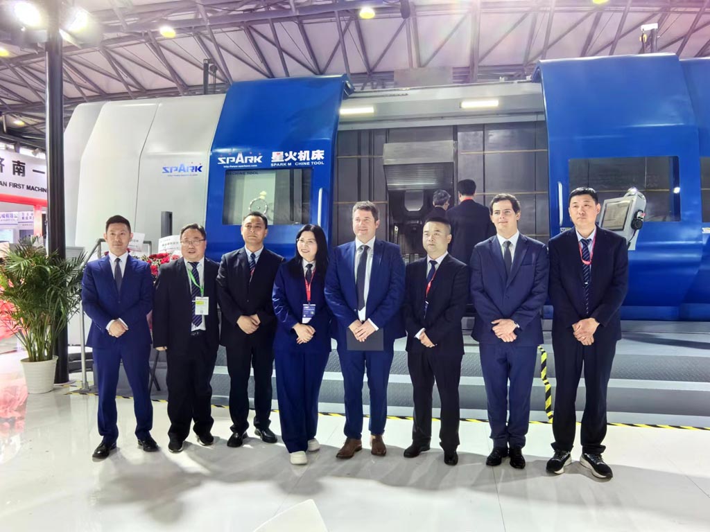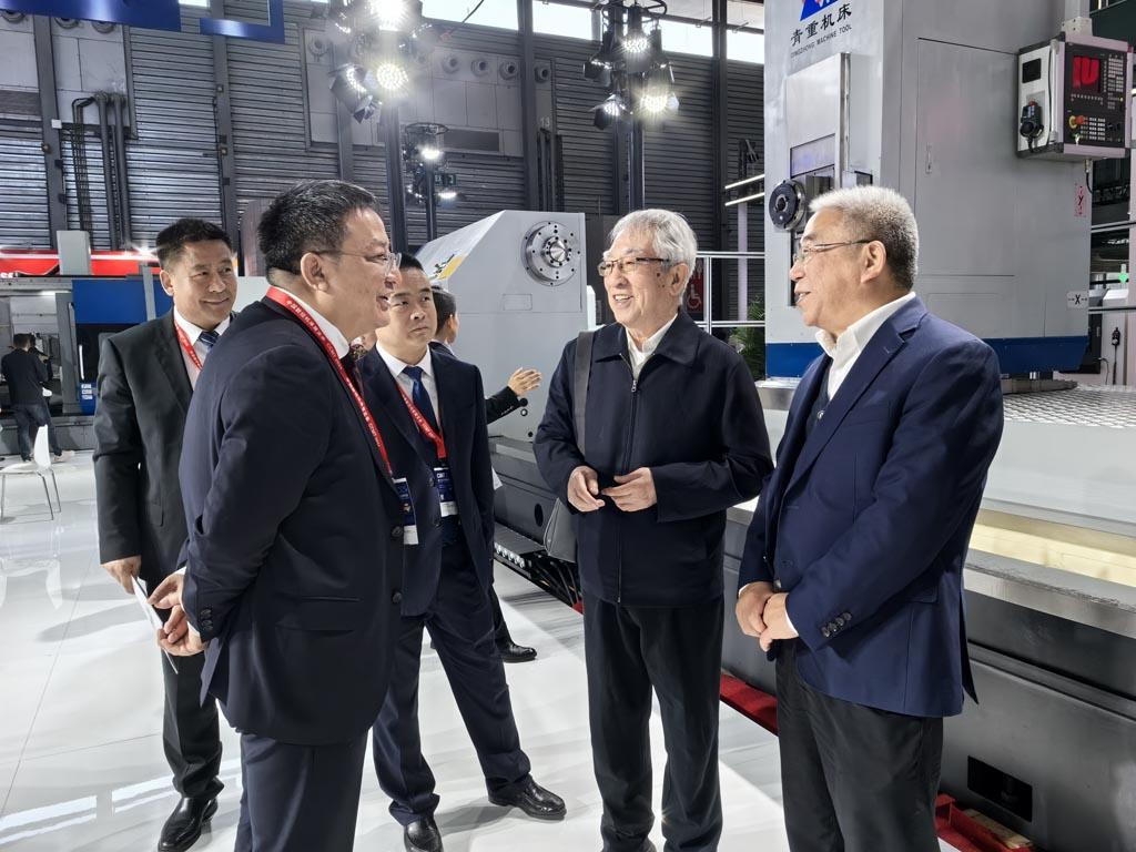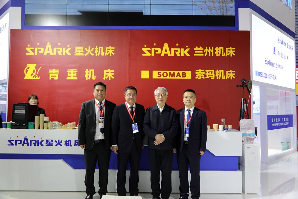 原機床工具協會會長、現機床工具協會榮譽會長吳柏林先生蒞臨星火機床展位參觀,與黨委書記、星火機床集團公司董事長蔣保權、星火青重公司董事長羅春剛親切交談并合影留念。