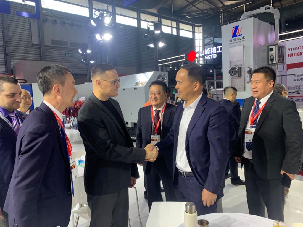 黨委書記、星火機床集團公司董事長蔣保權陪同胡市長一行參觀了星火本次參展的機床,詳細介紹了公司研發的大型五軸銑車復合加工中心、高端五軸銑車復合加工中心、數控臥式車床以及青重精密數控銑車復合機床產品的性能、用途和市場前景等,并對胡市長親臨展臺指導工作表示感謝。