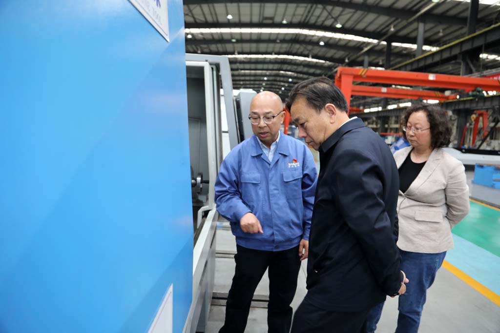 蔣俊對經濟日報社調研組的到來表示歡迎,對經濟日報社長期以來對星火機床的支持與關注表示感謝!隨后,簡要介紹了公司基本情況、發展歷程、產品結構、技術力量、生產能力和項目建設等情況,陪同參觀了公司生產的各類重型、大型、精密數控產品,介紹了其性能特點、技術水平和適用行業。他說,星火公司堅持走生態優先、綠色發展之路,立足機床裝備產業融合發展,大力培育先進裝備制造產業,不斷提升產業層次、優化經濟結構,企業經濟指標穩中有升。他還對星火機床與青海重型實現強強聯合、品牌疊加,打造我國車床行業第一品牌的重要性,以及提高國產重型車床產品制造水平和市場競爭力,突破“卡脖子”關鍵技術的重要作了說明。他指出,盡管企業近幾年遇到了困難,但企業一直堅持努力拼搏,發展成果顯著。星火決心在省市政府的關心支持下,抓管理強基礎,以創新促發展,不斷推進企業健康快速發展。