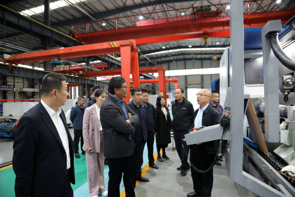 考察組在公司領導陪同下參觀了工業園重型加工車間、青重加工車間以及數控加工車間生產現場。蔣俊詳細介紹了星火的發展歷程、產業布局、科技創新等情況以及機床生產工藝、流程等情況。羅春剛就青重機床的一些技術細節問題同考察組一行進行了深入交流。