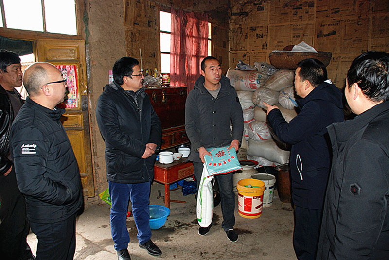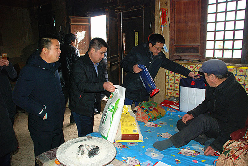 到達年莊村后,村黨支部書記孟克院,村委會主任李應祥,大學生駐村干部安圓圓等人將前來慰問的星火機床公司和鎮領導迎進村部,大家圍坐在火爐旁親切交流。蔣保權、蔣俊一行了解了村上慰問重點的基本情況后,在鎮、村干部的帶領下,分別深入身患重病、因病致貧的特困戶年建祥等4戶人家中,為他們送上棉被、被套和米、面等慰問品。領導入戶慰問的4戶特困戶,有的因病致貧,有的是孤寡老人,有的是因病返貧,生活比較困難。每到一戶,領導們關切的詢問其生活狀況、身體狀況、經濟來源等,鼓勵他們堅定戰勝目前困難的信心,希望他們相信黨和政府一定會幫助大家擺脫貧困,解決“兩不愁三保障”問題,同時了解了他們及子女的工作生活情況,希望能為他們提供力所能及的幫助。